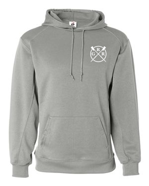 7.0 oz., 100% Polyester moisture management fleece fabric. Side and underarm textured waffle weave panels. Badger Sport shoulders for maximum movement. Front pouch pocket with two hook-and-loop closures with headset opening. Polyester rib cuffs and waistband. Embroidered Badger logo on left sleeve.