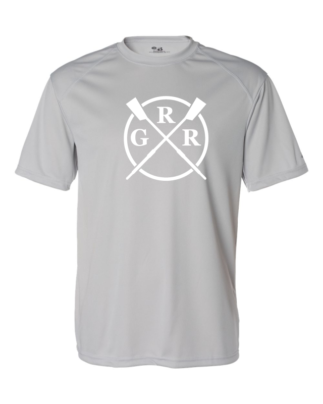 100% Polyester moisture management/antimicrobial performance fabric. Self fabric collar. Badger sport paneled shoulder for maximum movement. Double-needle hem with tack.