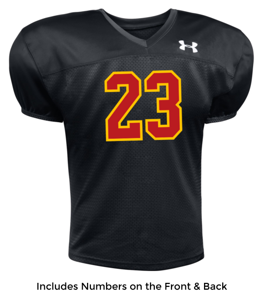 Includes 2-color Numbers on Front and Back. Keeping athletes cool and comfortable so they can perform with max output, the Under Armour Team Pipeline Practice Football Jersey locks players into training. It uses HeatGear technology to keep athletes cool on the hottest days. Smooth, durable, open-hole mesh HeatGear fabric adds ventilation and wicks sweat. Elastic binding for a snug fit around the arms. 100% polyester. Imported.