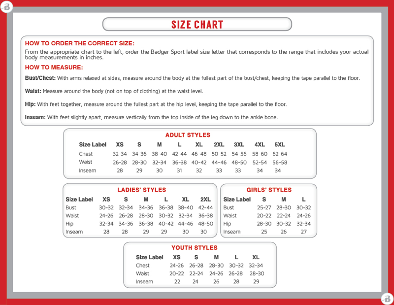 100% Polyester moisture management/antimicrobial performance fabric; Badger sport paneled shoulder for maximum movement;Double-needle hem;Self-fabric collar and cuffs;Badger heat seal logo on left sleeve